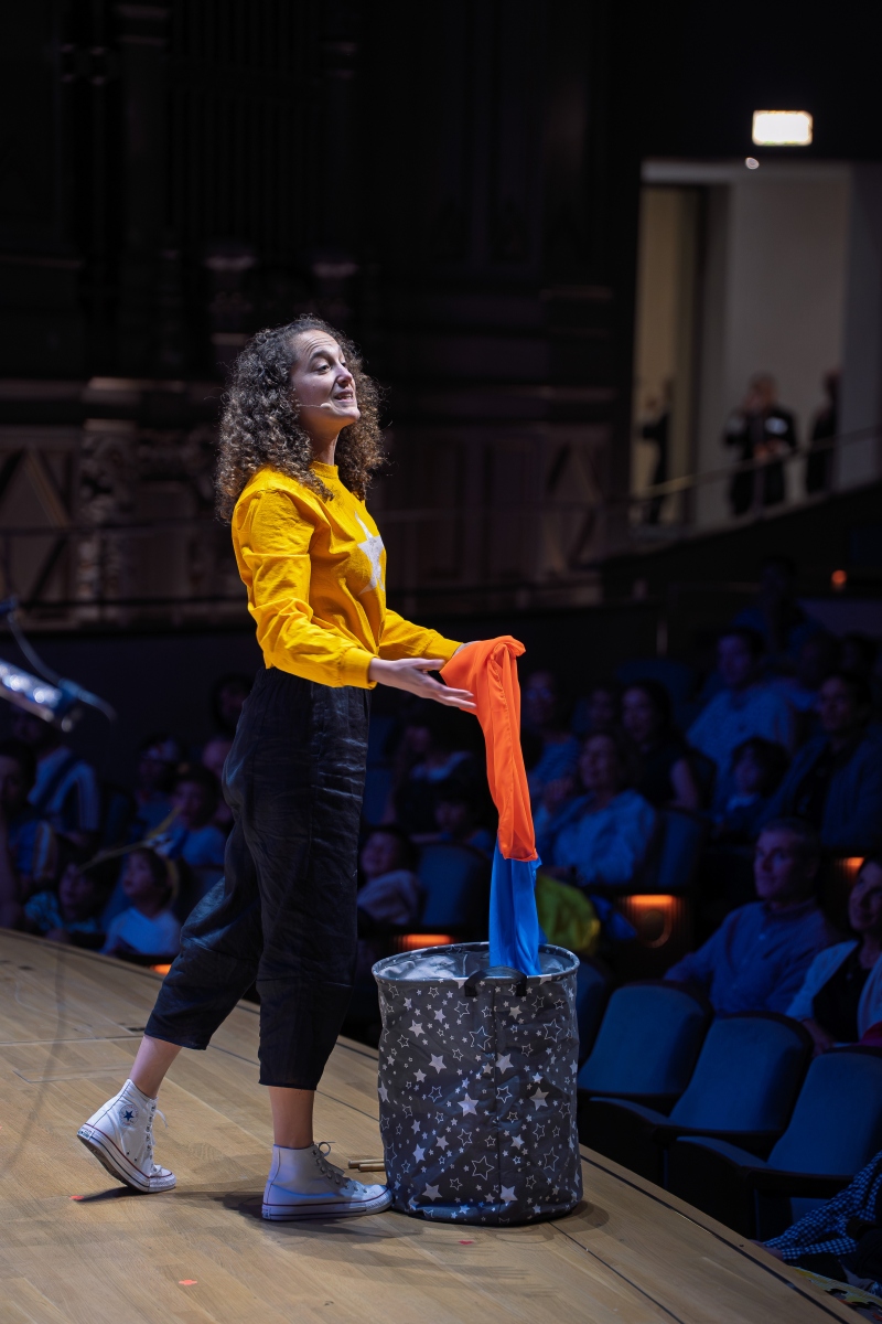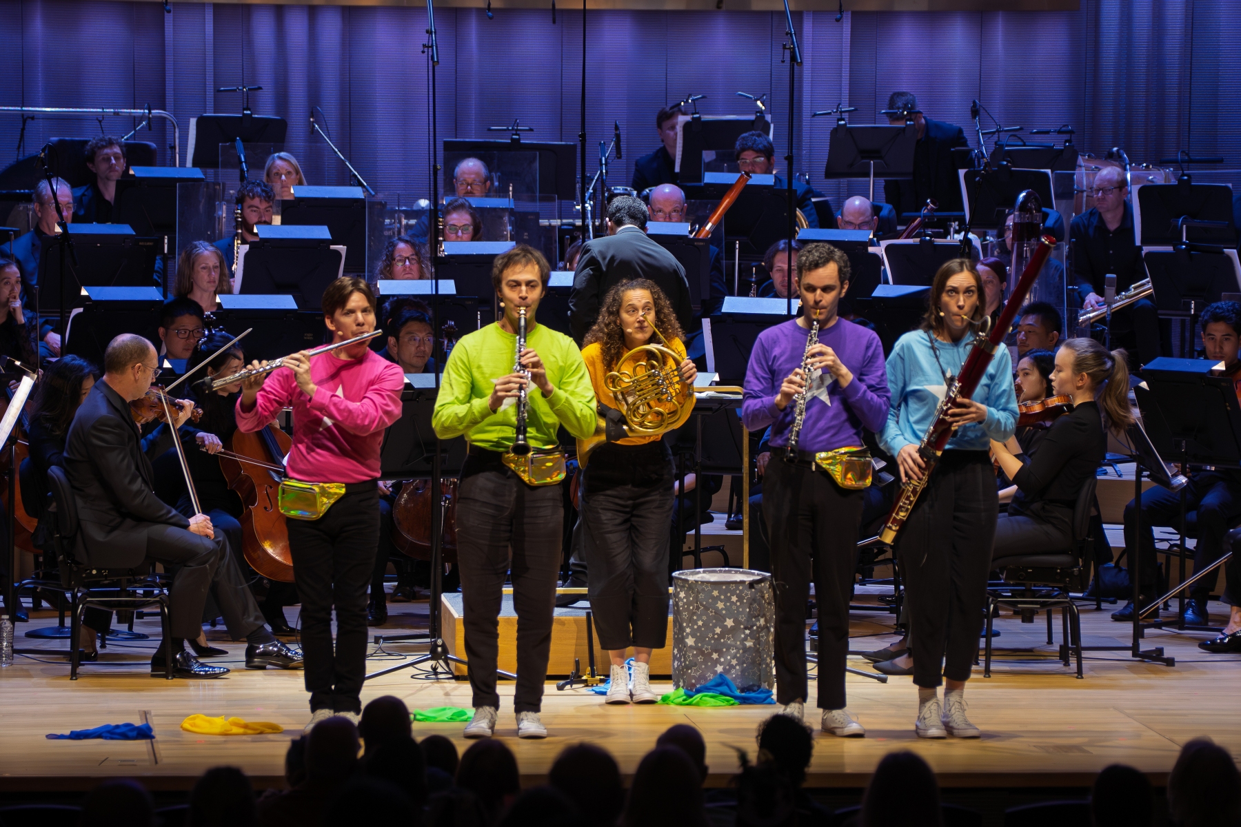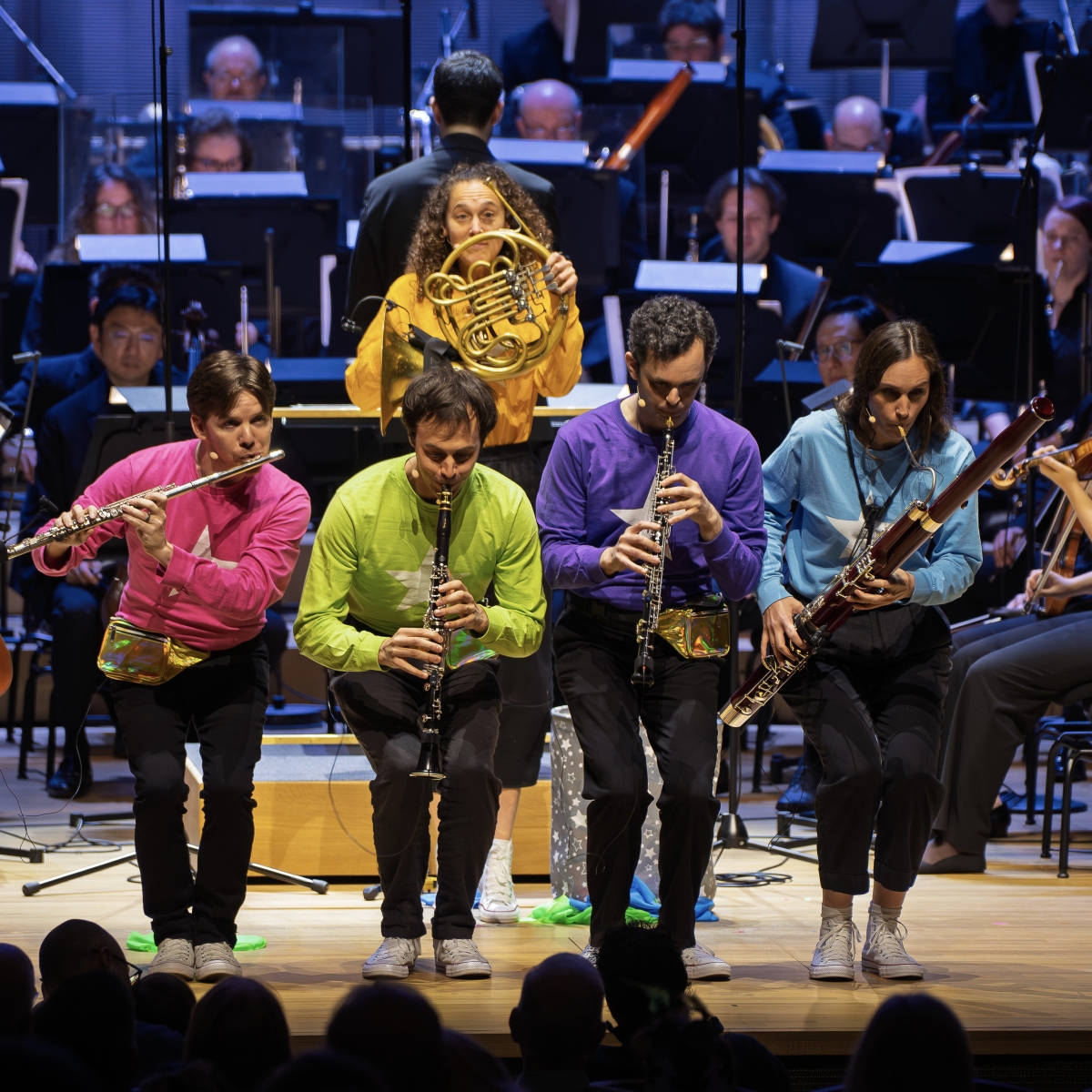 An audience of over 1,000 kids (and kids at heart) sang, laughed, and cheered for the San Diego Symphony and WindSync, who gave the world-premiere performance of my new piece, Space Junk, a Symphonic Children’s Story, on April 11, 2026. The project was two years in the making, and started when the WindSync team reached out to me looking for an alternative to their Peter and the Wolf arrangement. It just so happened San Diego Symphony was also looking for something new for young audiences. We all hopped on a zoom call and I shared Space Junk, a children’s story that I wrote ten years ago about a little star who gets covered in floating space debris, makes her way out, and turns the scattered junk into something beautiful. I had previously set this story to music for percussion, but the team agreed this was the story they were looking for, and asked me to create a new work for orchestra featuring WindSync. The piece features narration, theatrics, props, and audience participation including singing and clapping along (we got a group of 1,000 kids to sing and clap in rhythm!)